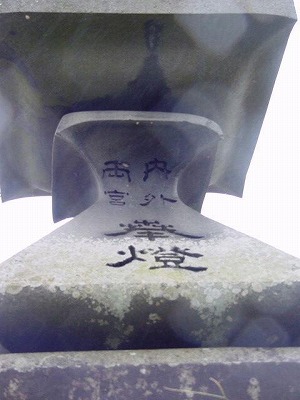 | 初代難波金兵衛が存命中に二代目が彫った神前灯篭。 石は新屋石とよばれる地元の安山岩で、緻密で硬く風化にも強い、初代と佐吉の合作灯篭から十九年後に彫られた、 宮付き神前灯篭。 |