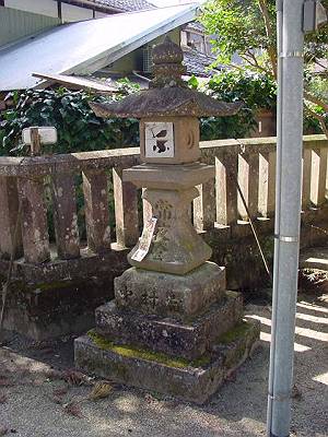 | 地元では何体かの神前灯篭が佐吉により、彫られたと伝わっているが 特定はできない、この灯篭も可能性がある、水分神社参道途中に建っ ている。 |