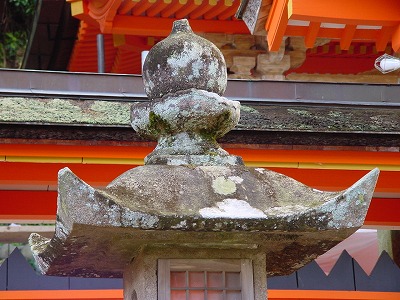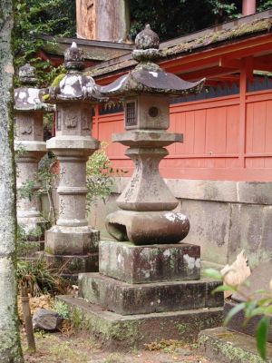 | 【嘉永七年(1857)九月】宇陀水分神社 宇陀市菟田野古市場245 銘は彫ってないが佐吉作と言われている、神前灯篭と呼ばれる規格が有り故郷柏原の神前灯篭と比べると、おとな しい形になっている、野外に設置する砂岩製灯篭の耐用年数を思えば、この形に収めたのだろう。 |