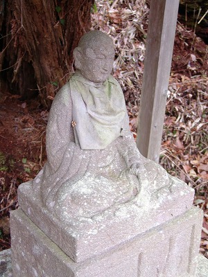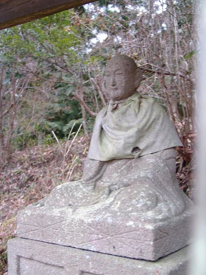 | 丹波佐吉が彫った弘法大師座像は山中にかなりの数建っている、全て屋根付きだが光線の具合の良い大師像。