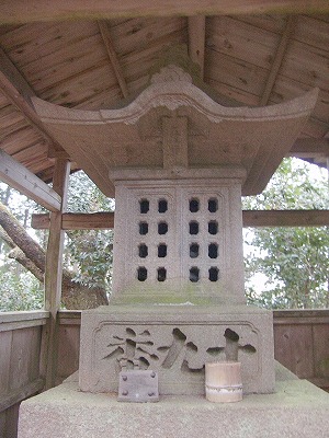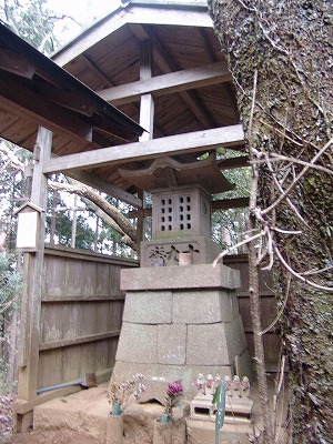 | ヒナ女像、石の祠に入った女人像佐吉(照信作)の刻印あり。 | |||||