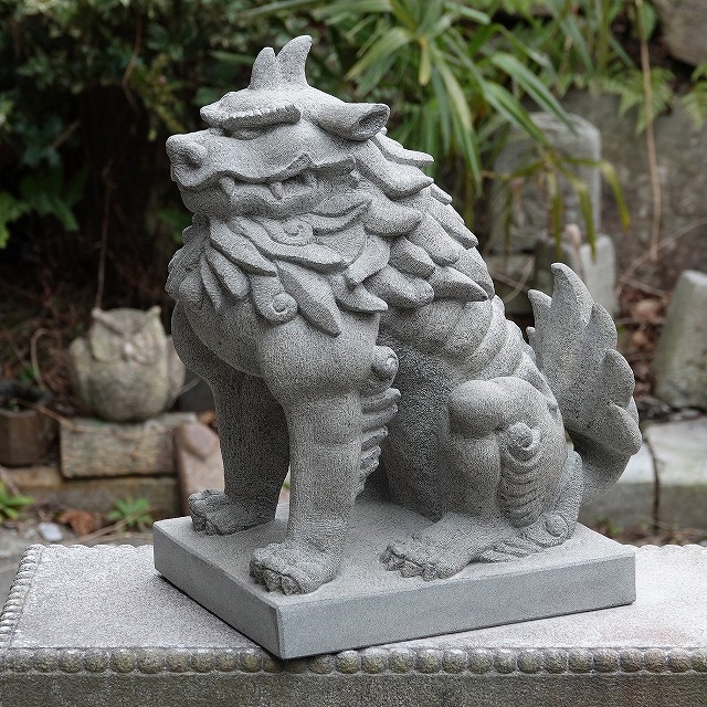 重要文化財になっている滋賀県の大宝神社木彫国犬を石で摸刻、戦前の狛犬奉納ブームの中東京と岡崎の石工が競って彫った量産型の狛犬。