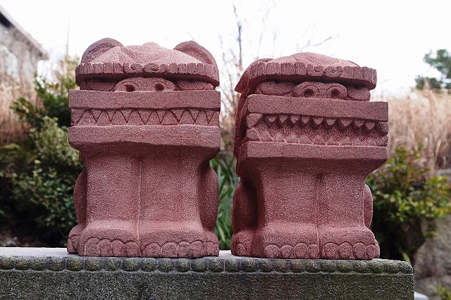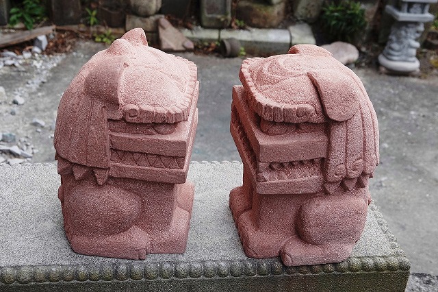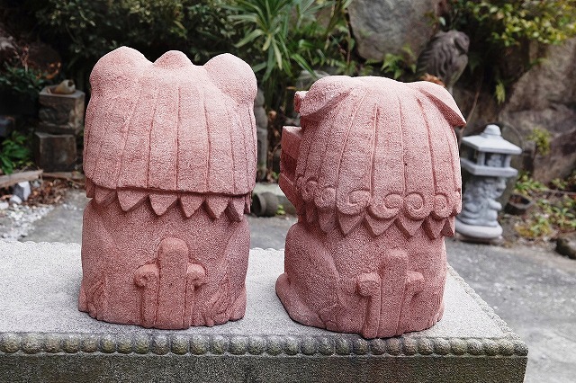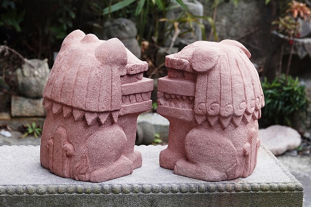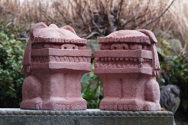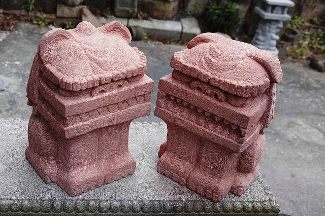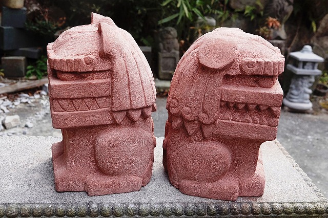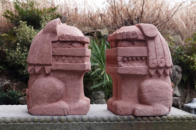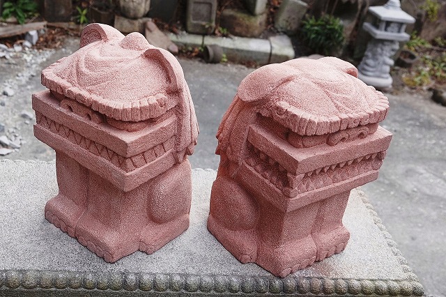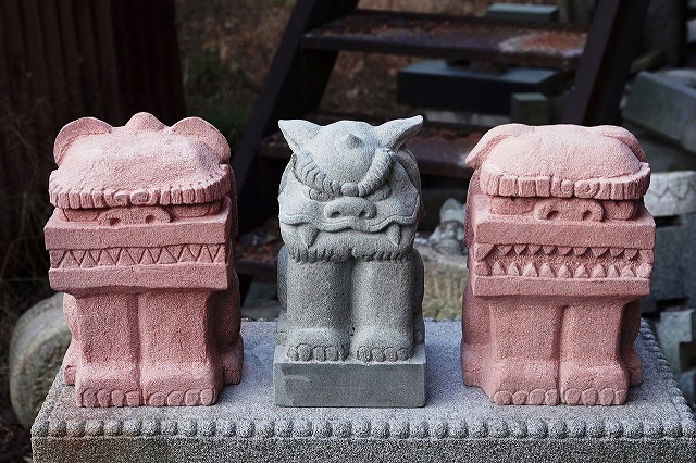 真ん中はボリューム感の比較用に和泉砂岩のシーサーを挟んでみました。