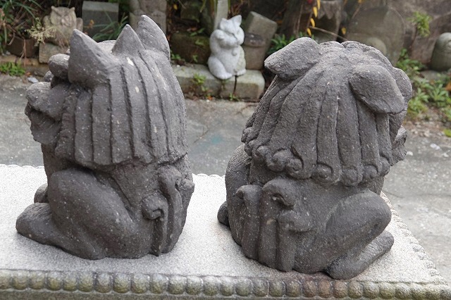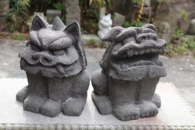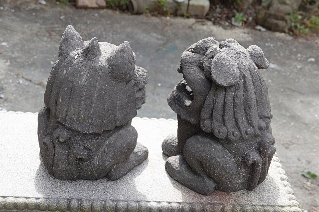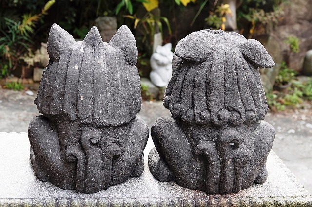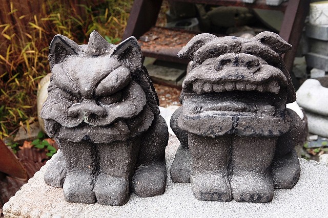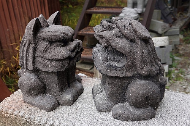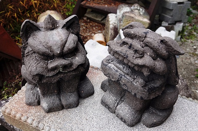 手に入れた凝灰岩で小さな獅子狛犬シーサーを彫っています、製作途中ですが画像を載せます。