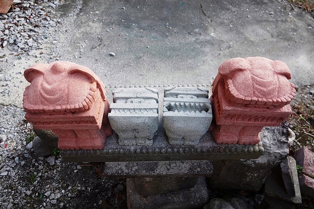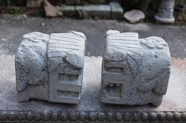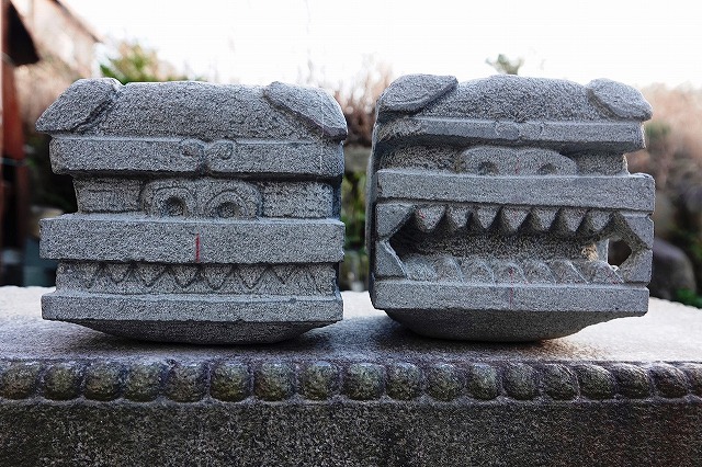 下駄箱の上に載せるには四寸五分までか、インド砂岩のシーサーは室外か台付きで床の上に