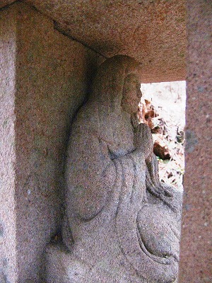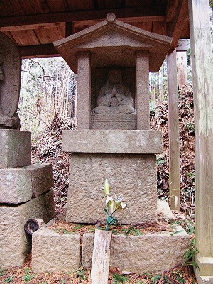 | 丹波佐吉が彫った弘法大師座像は山中にかなりの数建っている、全て屋根付きだが光線の具合の良い大師像。