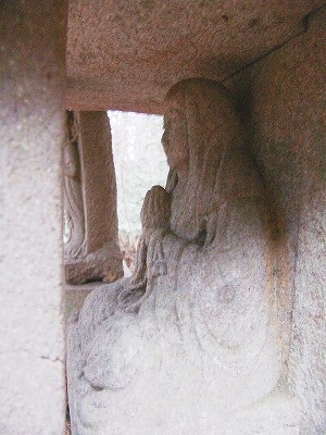 | ヒナ女像、石の祠に入った女人像佐吉(照信作)の刻印あり。 | |||||