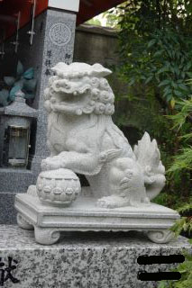 個人宅の庭にあるお社に一尺七寸五分の獅子狛犬を設置