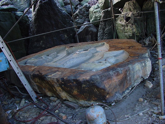 | 舟形の底を仕上げて見たら筋が、山傷が回っていた石が大きいので剥離する心配は無いが顔に出なかったのがラッキー |