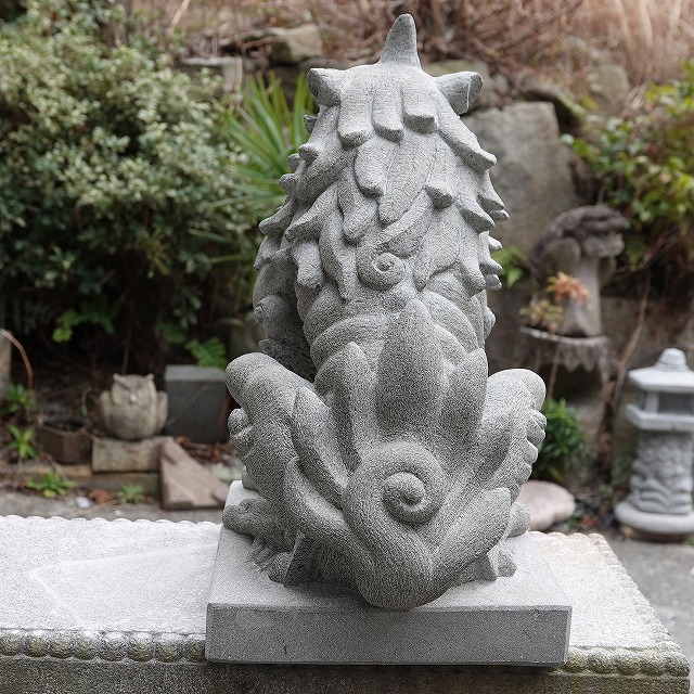 重要文化財になっている滋賀県の大宝神社木彫国犬を石で摸刻、戦前の狛犬奉納ブームの中東京と岡崎の石工が競って彫った量産型の狛犬。