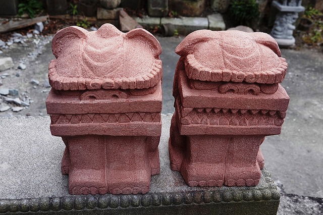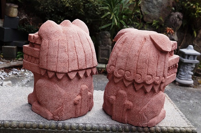 真ん中はボリューム感の比較用に和泉砂岩のシーサーを挟んでみました。