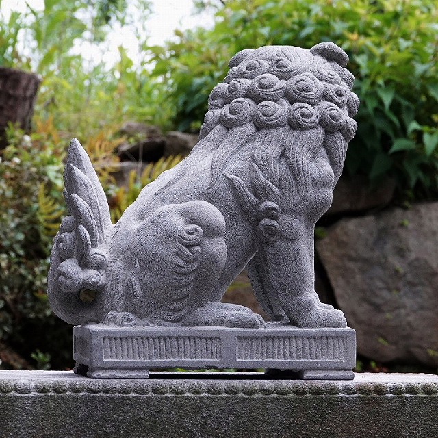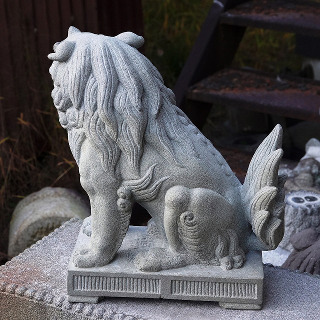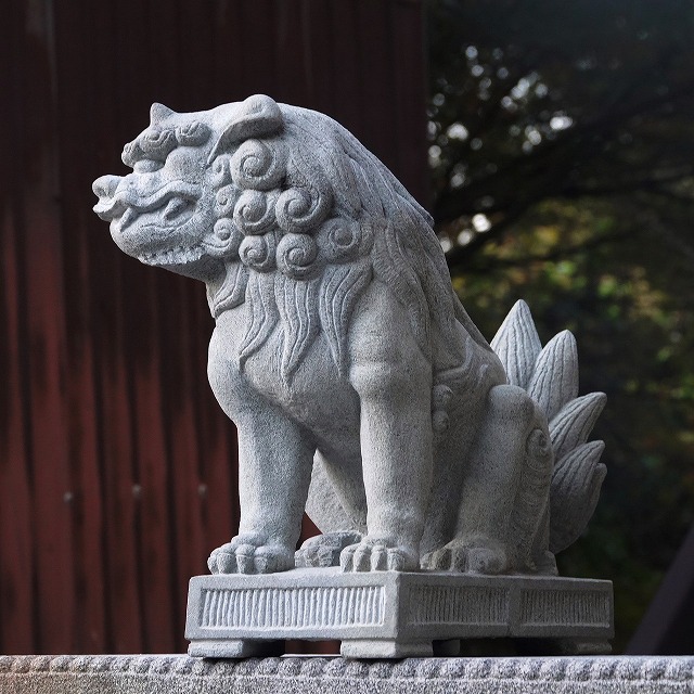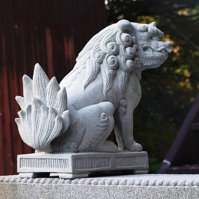角付きで狛犬、右『阿』獅子で一対の獅子狛犬です、扇型の尻尾も再現。