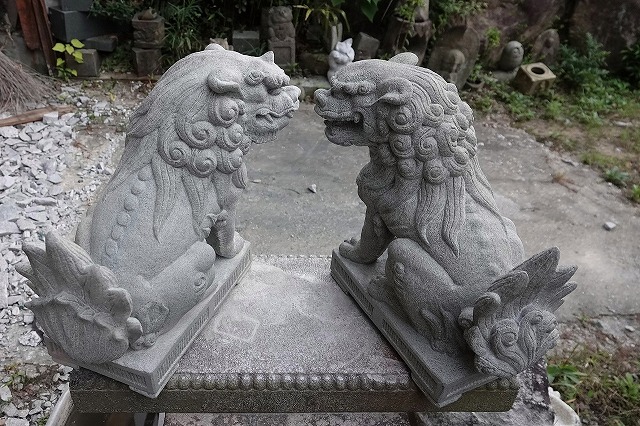 明治期に消滅した大阪産地で彫られていた、浪速型狛犬を復活再現しました、左『吽』