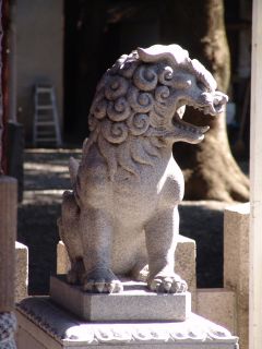 先代は和泉砂岩の浪速狛犬が建っていたが、風化の損傷がひどく建て替える事に、獅子狛犬の